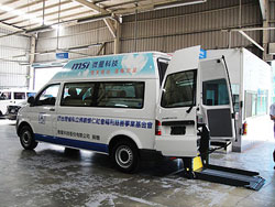 | The pneumatic lift and high-ceiling designs make riding a car more convenient for people in wheelchairs | |