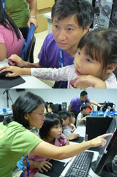Given the dramatic variation in the students’ abilities, it was decided to adjust the course content so that two-thirds of the material was relatively easy, and one-third comprised more challenging material. To get and keep the students’ interest, the classes made extensive use of animation, and the instructors made sure to give the children plenty of opportunity to have a go at creating animation themselves. “Letting the children try it themselves helped them to stay focused, and they progressed faster,” explains volunteer April. The instructors also made an effort to talk to the children in their own idiom, and integrated singing and jokes into the class to keep the students’ attention and win them over.
